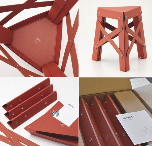 These ‘eiffel’ stools (http://cargo27.shop-pro.jp/?mode=cate&cbid=622392&csid=0) bare a striking resemblance to a structure I once visited in France ; ) You’ll be happy to know they are earth friendly and made from pure pulp and recycled paper.