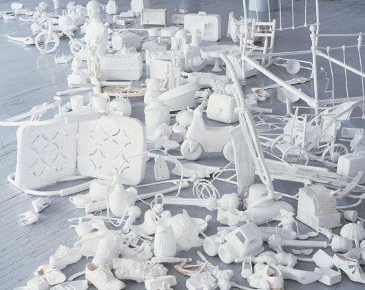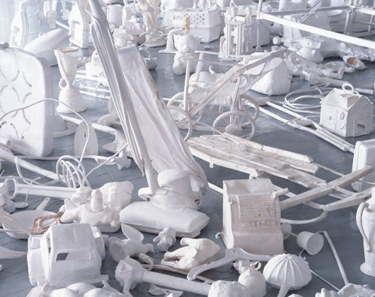 Artist Leonardo Drew is mostly known for his powerful and large-scale sculptural installations, which incorporate found materials such as paper, wood, tree branches, roots and mud. His cast paper sculptures (pictured above and below) were made to remind us of the remnants of everyday life. Oh yes, I think I just spotted my vacuum cleaner, shoe and trombone! I never knew clutter and mess could look so good. I’m beginning to think tidiness is so overrated!