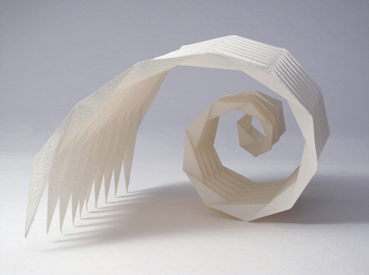 Sit back and enjoy this breathtaking collection of works by legendary Italian artist Luisa Canovi.(http://www.origami-do.it/) Each folded form was said to have been inspired by origami spirits that exist in the elements of nature. Above: Nami (wave)