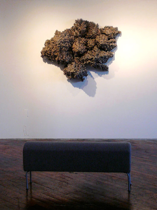 As with nature this sculpture changes over time. A year between shows and you can see the natural yellowing of the paper (pictured below) also the softening of the material. This Jaime says is the reason she chose to use a natural material such as paper to make her sculpture. She sees her work as a living organism that ages and changes with time.