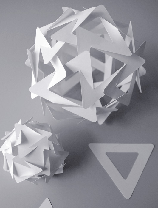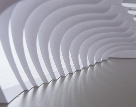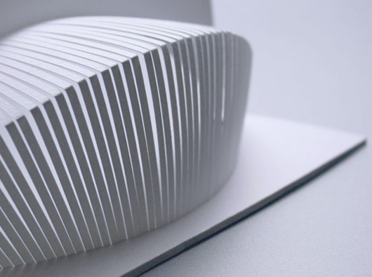 Take a look at this amazing series of works by Professor Yoshinobu Miyamoto. He is an architect, a teacher of architecture at the Aichi Institute of Technology (AIT) in Japan and one of the finest paper engineers I have ever come across. This is seriously breathtaking stuff! See for yourself. Above: Cone, 2009.