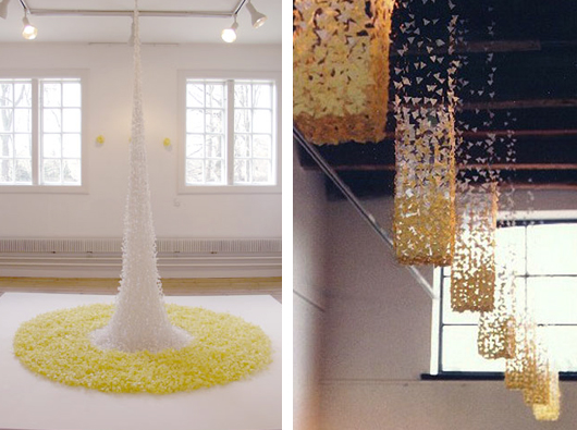 Left Prismatic – Made from 7,500 paper pyramids, wow! Right Spring Sea (detail)