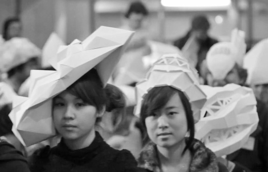 HEADSPACE 1 was a project embarked on by students of the University of Melbourne as part of their Bachelor of Environments degree. The project invited each student to take an idea from within their head, and to re-create that idea in paper form, to place on their head. Take a look at the results, they’re amazing.