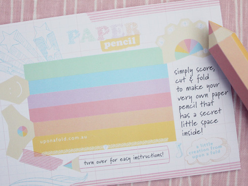 So how does a cute little paper project sound? It’s time you guys got folding too you know : ) As of today this cute paper pencil card will be sent out with every order!