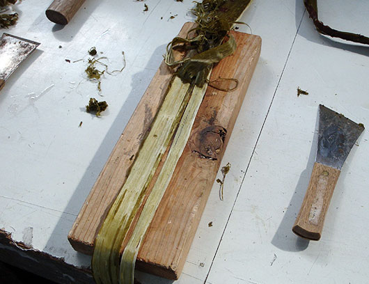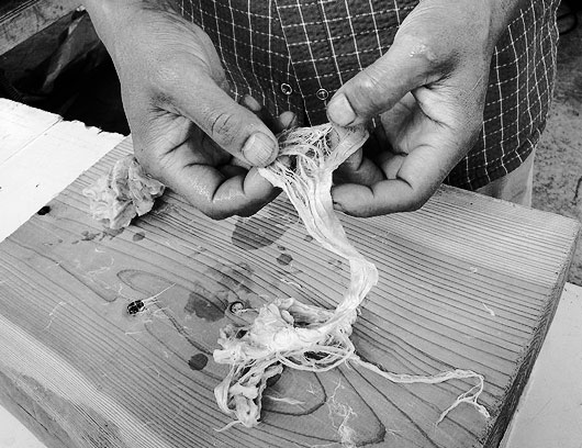 The clean inner bark is then beaten with a wooden mallet for quite some time.