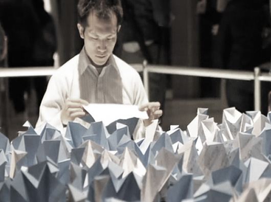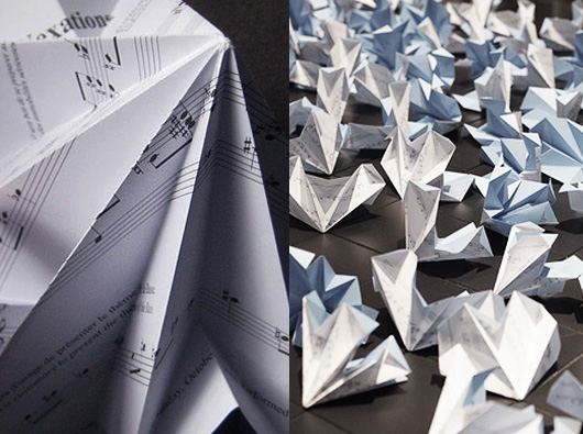 The actual folded design is by Cybele Young and each sheet was die-cut, scored and designed to be able to be folded in just 90 seconds – the same time each piece took to play. Oooh, how I wish I could have experienced this up close! What a beautiful, beautiful performance. It went all-night long and into the early hours of the morning – sheet by sheet, fold by fold. Just brilliant.