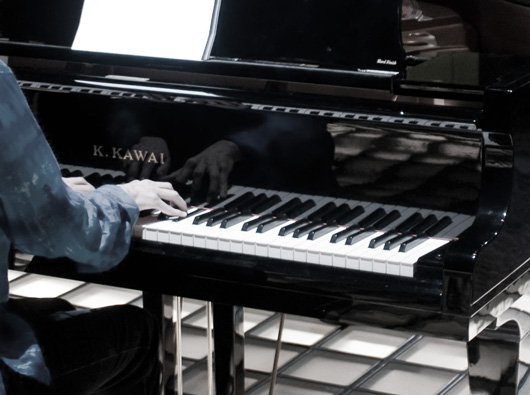 Enter Micah Lexier. His desire, was to give the music form. He created this beautiful idea to transform all 840 copies of the score into these small origami objects. Each pianist set aside the score as it was played out. One by one the sheets of music were carried to a table where they were folded and placed in a 10 x 84 grid – so the audience knew how far along the performance had come.