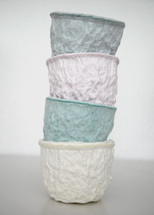 I stumbled across these beautiful paper cups and bowls yesterday. They are by Dutch artist and designer, Yvette Jacobs. (http://www.yvettejacobs.com/) They remind me of paper pulp making as a kid. I used to love collecting milk cartons and other papery bits to make my hearty pulp. Dropping pretty petals and leaves into the mix, would always make me smile.