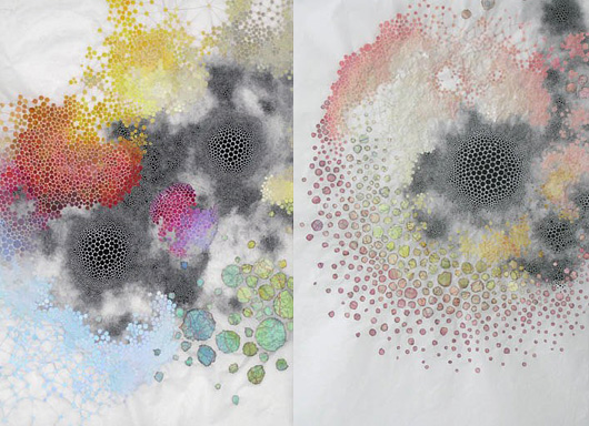 These paper works are by artist Karen Margolis. Her inspiration comes from the Ensō (円相) – a Japanese word meaning circle, and a concept related to Zen.