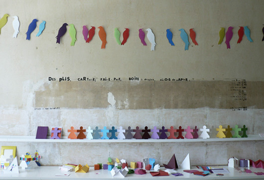 Juliette Barbier (http://www.juliettebarbier.com/) is a textile designer, but she grew up learning all about paper and folds from her father. This meant a smooth transition, from her career in textiles to her colourful new world of paper. Today, Juliette along with her happy helpers (all Barbier family members, and friend Babeth) cut, paste, crease and fold, beautiful little cards and packages for all to enjoy. I can’t wait to visit, next time I’m in Paris!