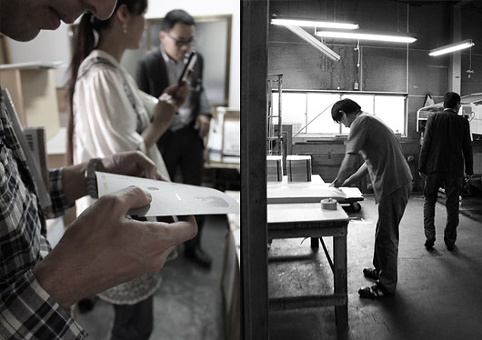 Akiyoshi Yamada and Shoko Yamada from Kami No Kousakujo make designers paper dreams come true. They gave us a tour of their factory and it was inspiring to see just how passionate they both are about this ongoing project. They showed us how Tapehooks are made (by wetting and curling tracing paper would you believe!), and even how the Airvases are cut (top secret stuff!). You’d be amazed at how much testing goes on in order to produce these products.