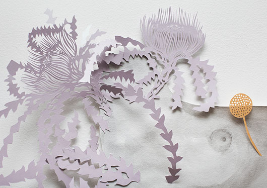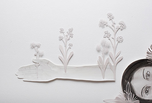 Sangeeta Sandrasegar‘s paper works make my heart melt. These are details of her recent self-portrait titled, The Bush has ceased to weep, and when she smiles, she is a mistress not to be denied. Please do visit her blog. It’s filled with beautiful paper art and stories to accompany them.