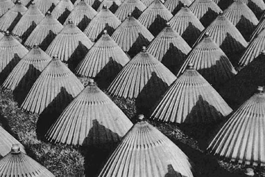 Oiled umbrellas placed out to dry, taken from the early 1900s.
