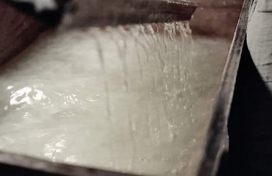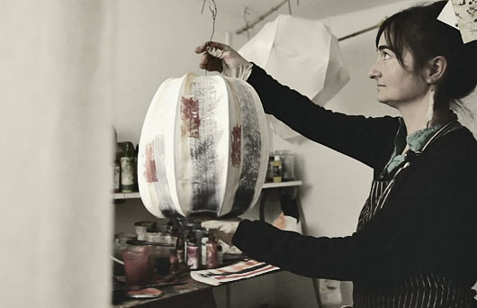 The first step is to form the armature. We use wire or bamboo, designing each lamp with the light fixture in mind for proper heat ventilation. The armature can be any form, shape or size. Often inspiration comes from flowers, sea creatures, insects, or an Asian aesthetic. The paper is made of an abaca and cotton blend, using a mold and deckle to form sheets. The sheets are pressed with an eight-ton press to bind the fibers. We apply the damp paper to the armature one panel at a time. No glue is used, just a soft brush to fold back the edges onto themselves forcing the fibers to bond together. Once the paper has dried taut, the piece is painted with watercolor paint using brushes and airbrushes. When the paint is dry a resin is applied, acting as a protective layer that strengthens the lamp structurally and gives the paper a translucent, glowing quality. The final step is to configure the electrical components, at which point the light is ready for installation.